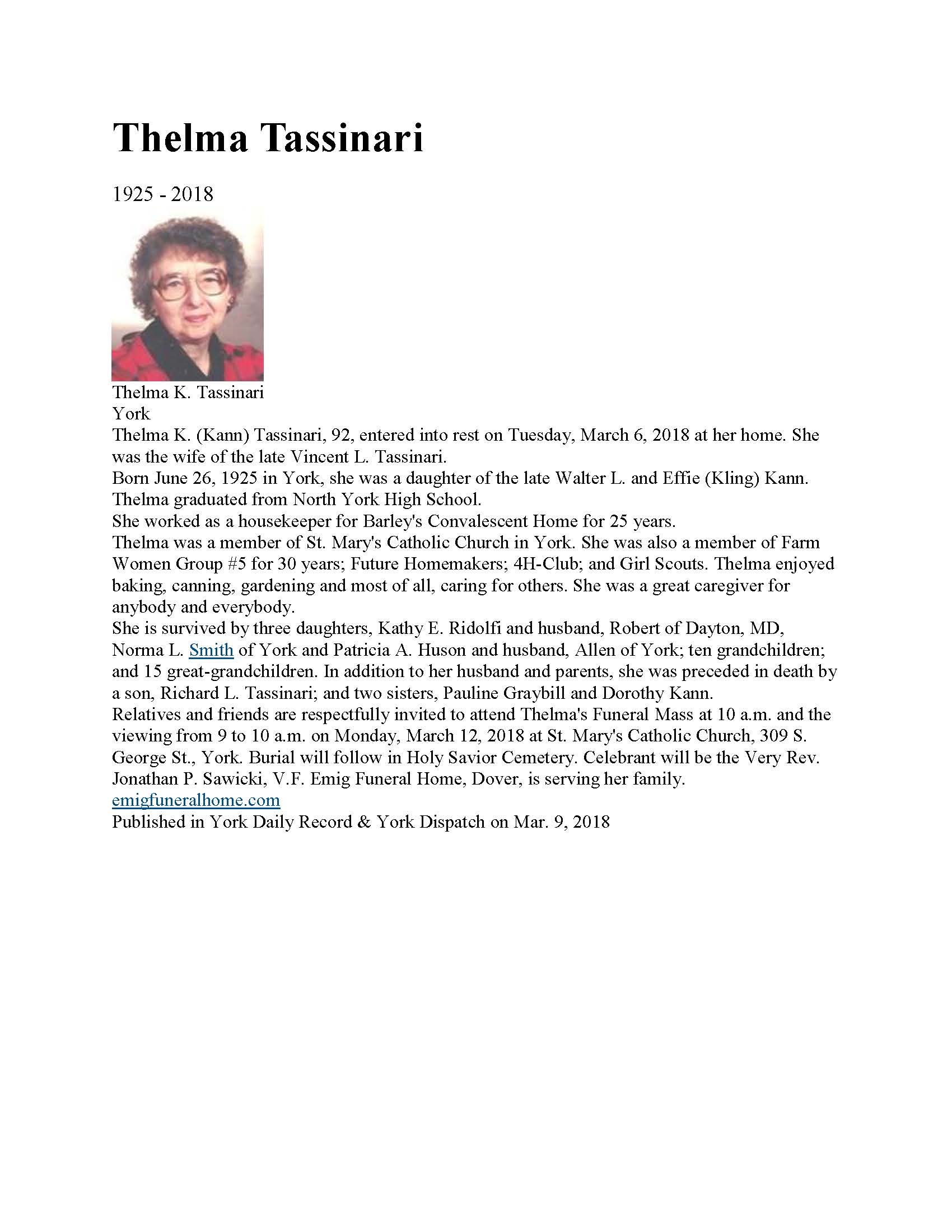 Thelma K. (Kann) Tassinari