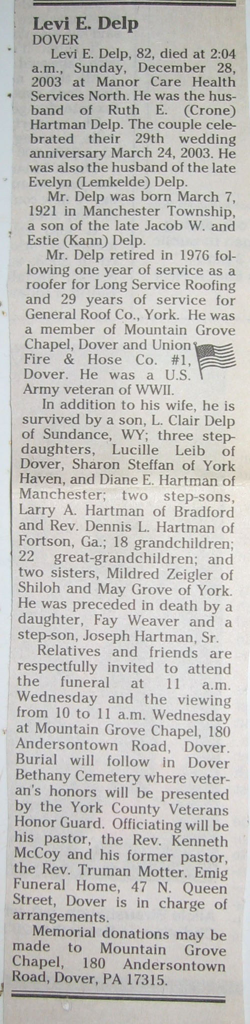 Scrapbook Page for Levi Eugene (Johnnie) Delp