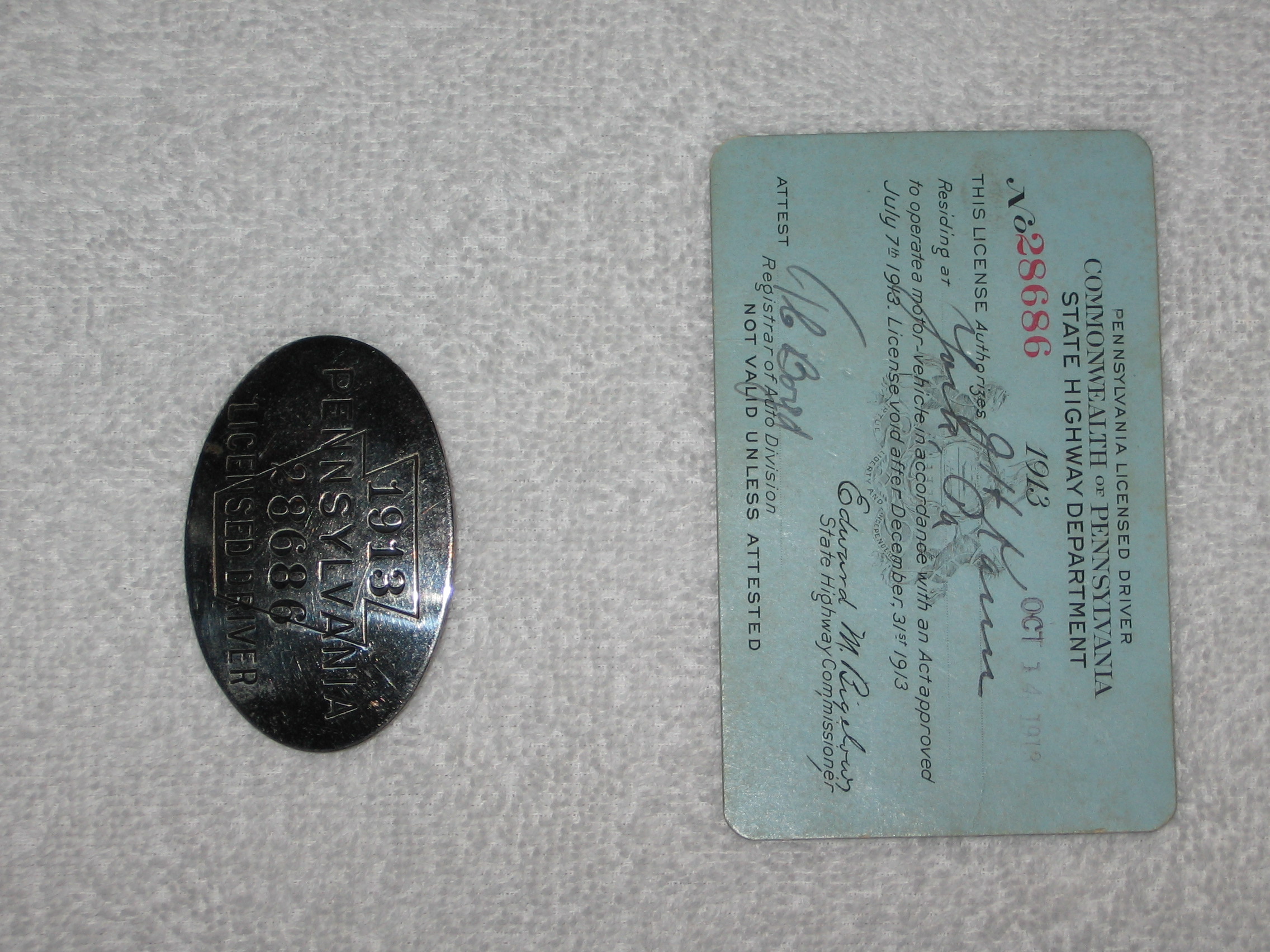 Drivers License from 1913 At the time this was called a chaffeur's license. |