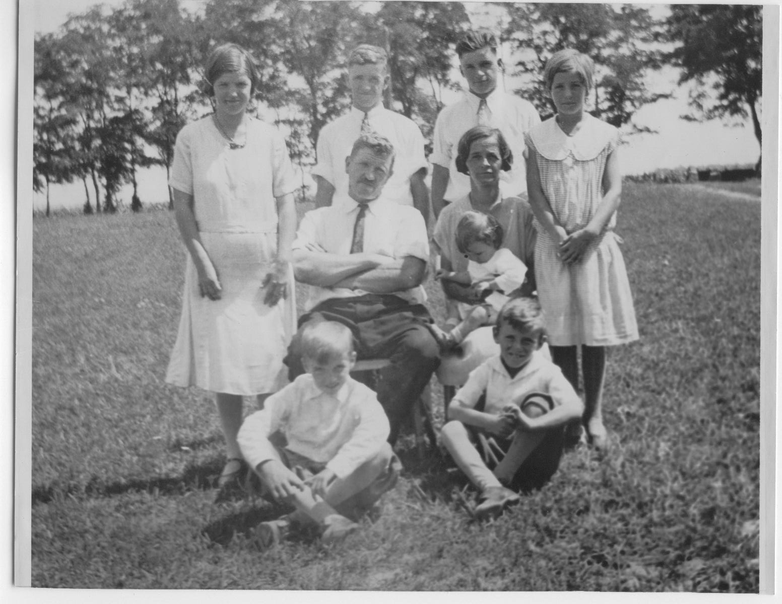 Family in 1932 Back: Esther, Raymond, Robert, Mary Middle: John and Savilla holding Fairy Front: Earl and Richard |