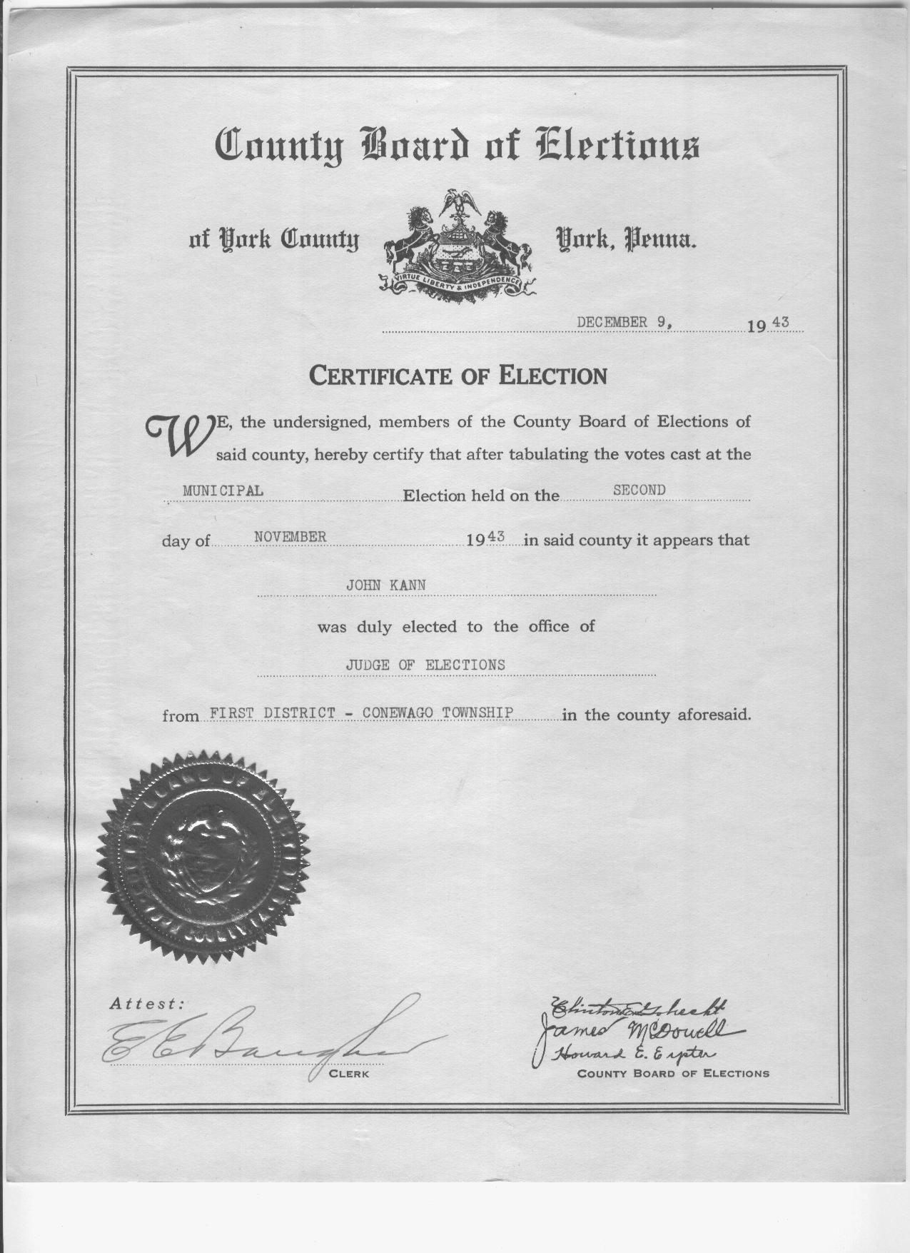 Judge of Elections 1943 to 1977 were found |