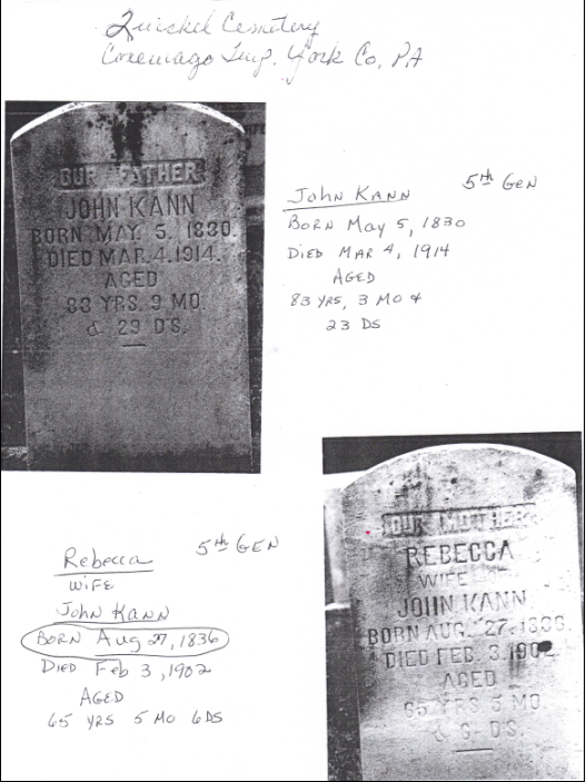 Kann's graves at Quickel's Church Cemetary near Zions View.