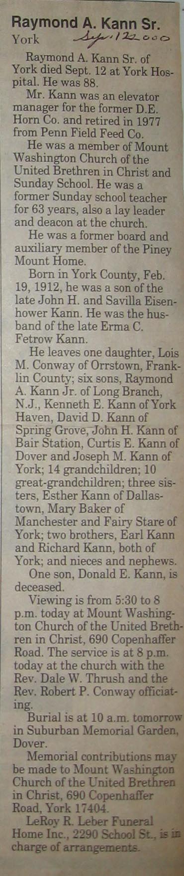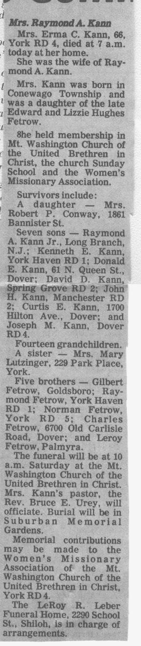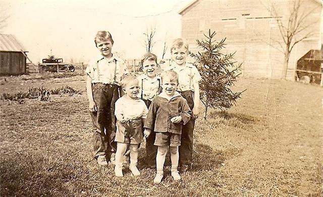 Raymond and Irma Kann Family about 1956 Front: Joseph and Curtis Middle: Lois, Mary and Ken, John, and David Last: Irma, Raymond, and Donald |