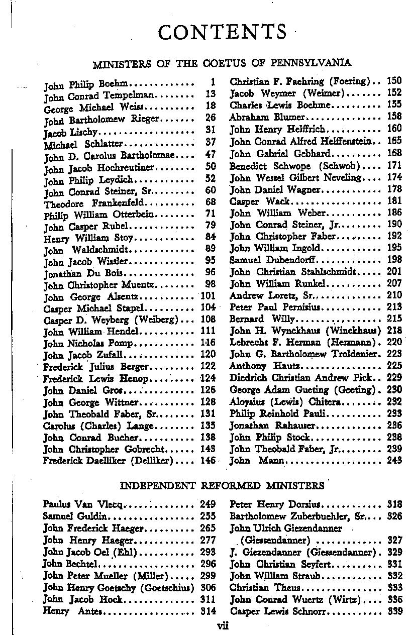 Early Reformed Ministers of the Coetus of PA Reverend Jacob Lischy is fourth from top on left column |