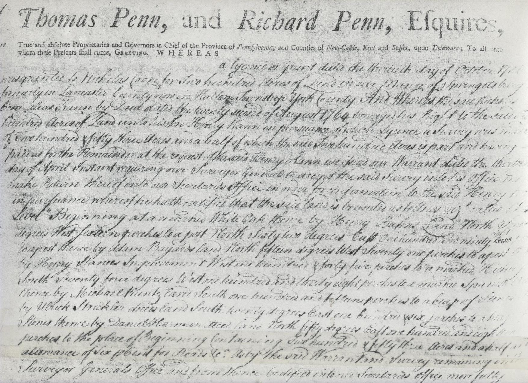 Patent to Nicholas Coon (Kann) Granted from the Sons of William Penn |